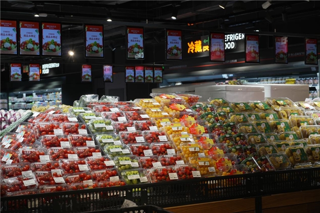 生鲜板块成为本次升级的核心亮点。蔬菜区精选氧心园乳黄瓜、草莓番茄等高品质蔬果,并引入东源兴品牌菌菇、榴莲蜜薯、甜杆西兰花等特色品种,满足多样烹饪需求。水果区汇聚空运树熟榴莲、串茄/春沐源番茄等热门品类,并携手佳农、佳沃、怡颗莓、都乐等知名品牌,持续丰富果盘选择。正值初冬尝鲜季,来自智利的饱满车厘子与丹东产区的红颜草莓也已陆续上架,以鲜润口感点亮时令餐桌。肉禽区聚焦品质升级,主打进口牛肉、潮汕牛肉、气调猪肉及可生食鸡蛋等高标准单品;水产区则引进挪威三文鱼、帝王蟹、东星斑、九节虾等中高端海鲜,全面升级家庭餐饮品质。