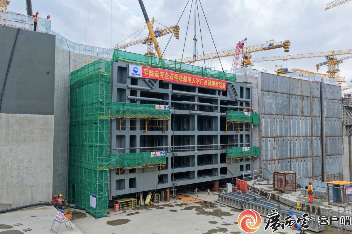 10月15日,跟着平陆运河企石纽带上闸首右线最终一扇门叶吊装到位,企石纽带人字门吊装作业悉数完结,标志着企石纽带正式转入人字门附件及机电设备装置阶段,为后续的无水调试、有水调试发明有利条件。